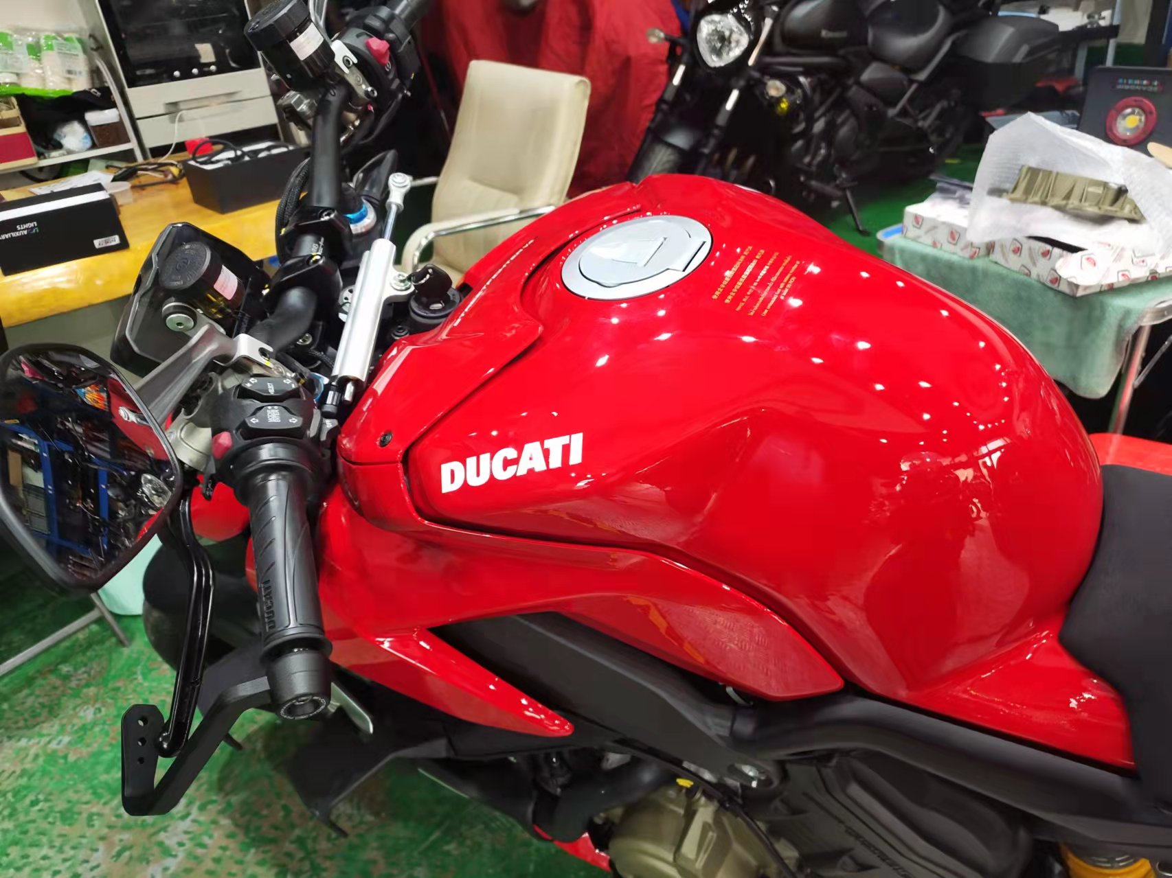 少許遺憾的是,因為沒有場地(深圳禁摩政策),無法駕駛實車,點火啟動以后的咆哮聲,就會讓你心動不已,如果能有場地和機會,一定不要錯過,欣賞個美圖結束吧。